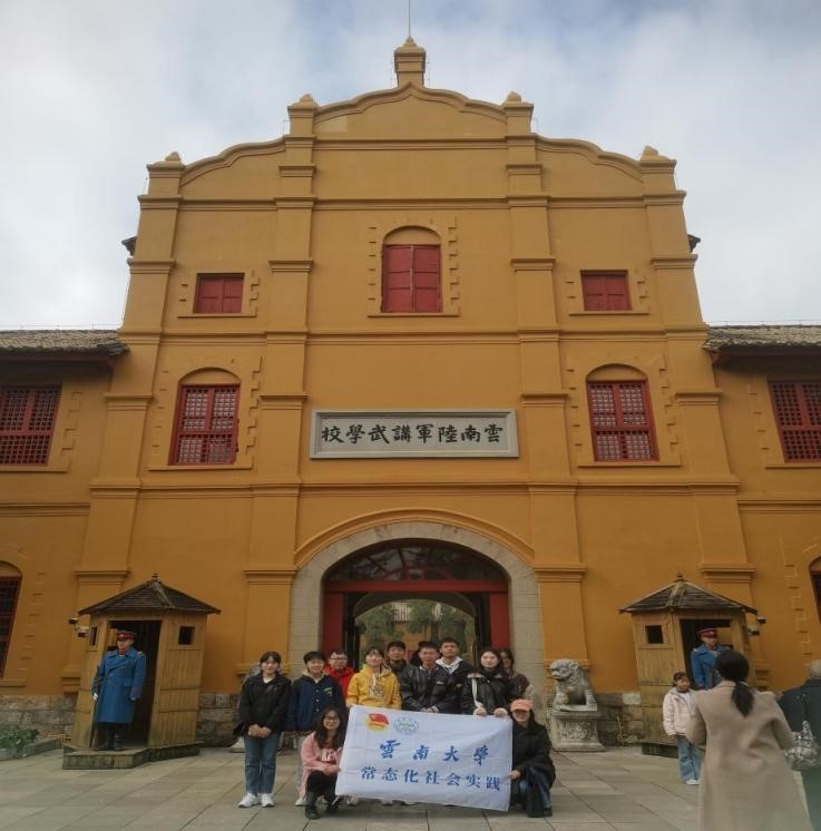 为深入学习贯彻习近平总书记关于弘扬爱国主义精神的重要论述,培养同学们的爱国之情、砥砺强国之志,数学与统计学院基础数学与应用数学2023级研究生团支部实践调研团的焦雯琪、赵兴芳等12名同学以“学习红色资源,参观文史纪念馆”为活动主题,于2023年11月19日上午9点,从呈贡校区出发,乘车前往五华区的云南陆军讲武堂进行参观。