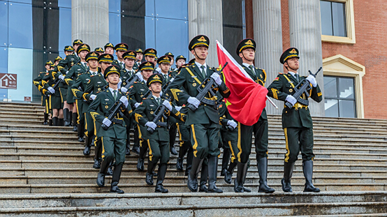 我院2019级本科生周晟参加拉斯维加斯5357cc国旗护卫队(第二排左1)